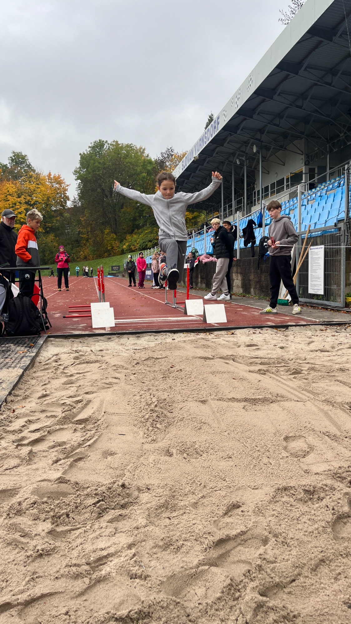 S trochou obavy jsme sledovali oblohu a vyčkávali na příchod prvních závodníků. Na stadionu v Kotlině se totiž konal 1. ročník Atletiky pro první stupeň naší školy, konkrétně pro 3. - 5. ročník. Naštěstí, i přes určitý chlad, k nám počasí bylo vlídné - nepršelo. Každá třída soutěžila ve dvou kategoriích - chlapci x dívky - ve třech disciplínách: 60 m, skok daleký a hod míčkem. I když šlo také o vítězství, první tři "brali" medaile, základním principem soutěží bylo zúčastnit se, vyzkoušet si (například start z bloků se startovním výstřelem) a zažít vlnu štěstí po .... dokázal/a jsem to. Poděkování všem závodníkům, rozhodčím a hlavně třídě 8. A, která se v krátkém čase podruhé zhostila svého úkolu na výbornou!
